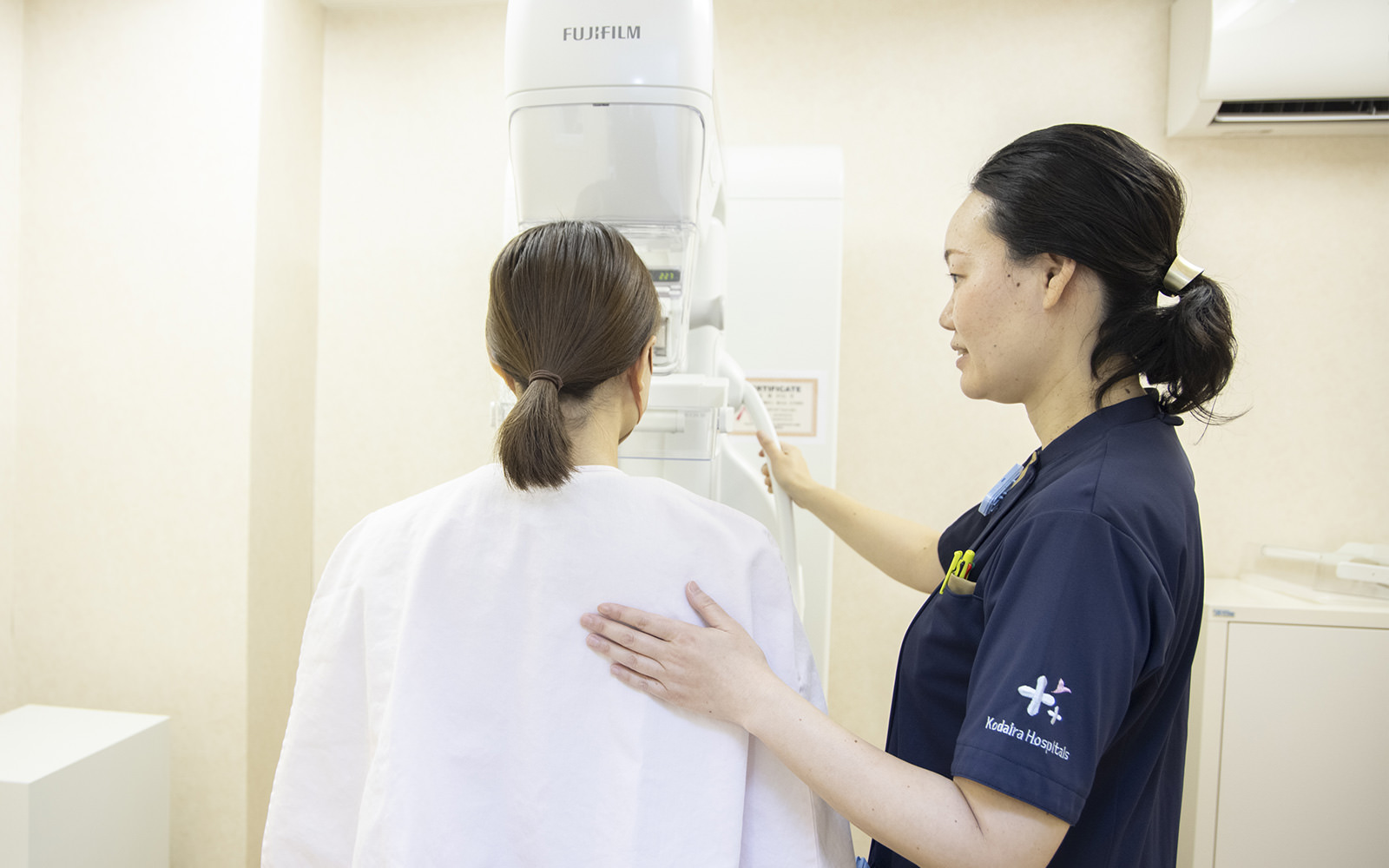 中でも、乳がん検診に関しては「マンモグラフィ検診精度管理中央委員会」の規定に準じた機器を導入しており、機器も運用する技師も認定試験をクリアしています。また、マンモグラフィ検査を女性技師2名の体制で行なっているのも、当院の特徴のひとつです。