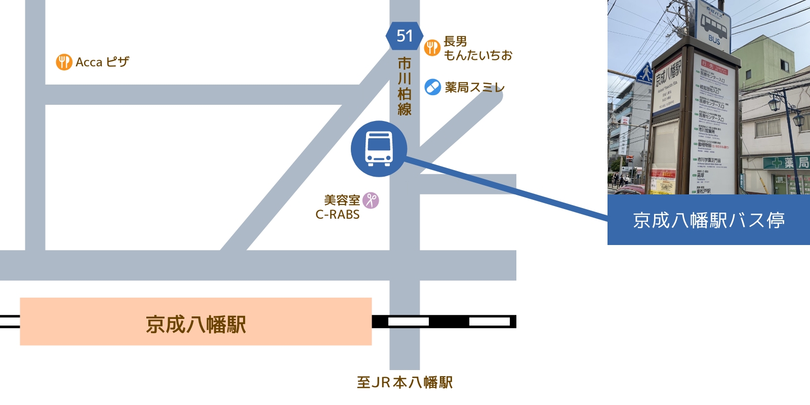 京成本線「京成八幡駅」より乗車の場合